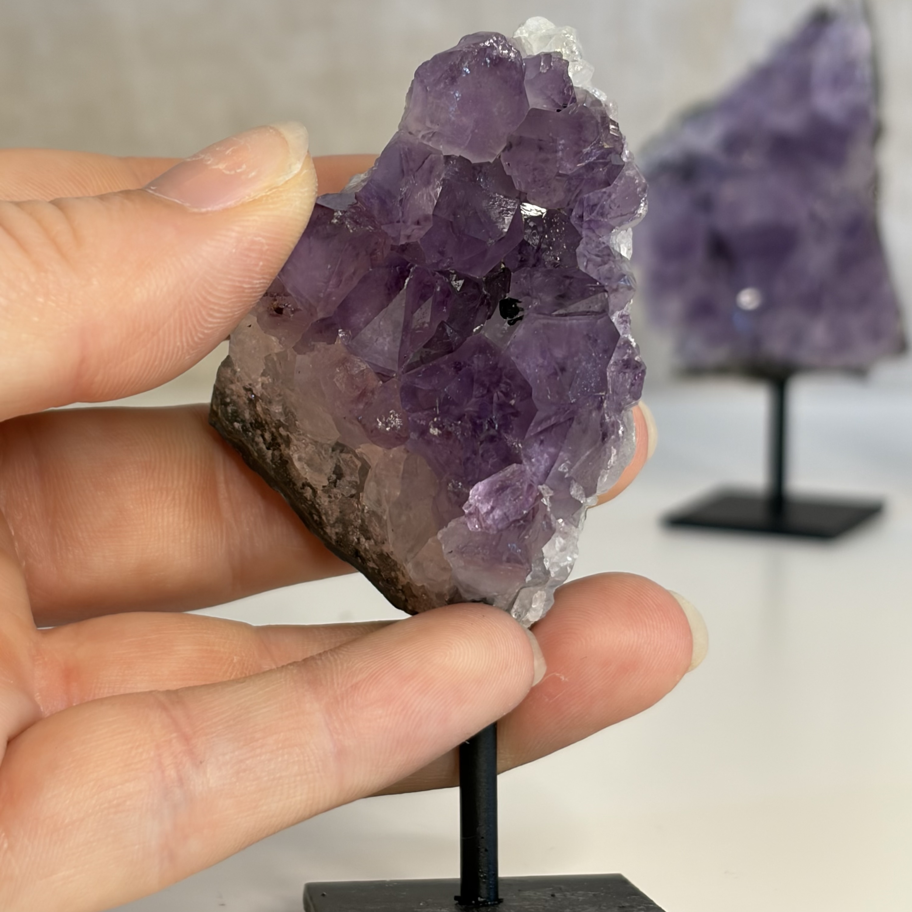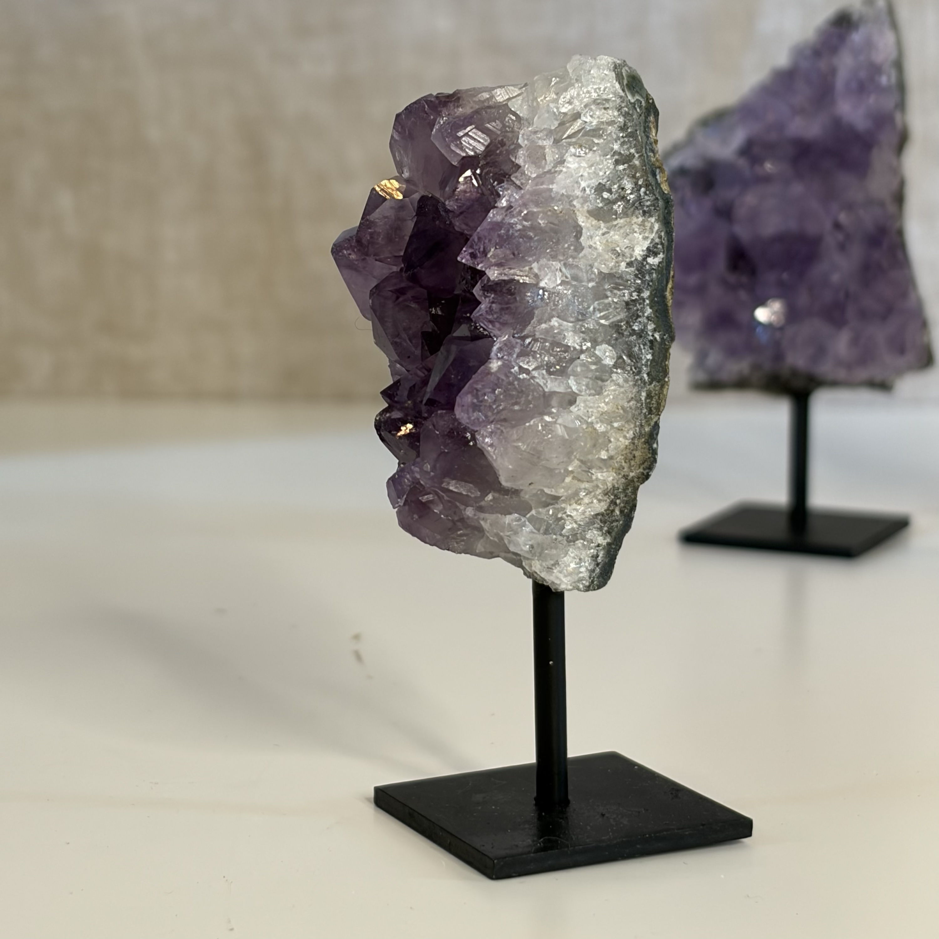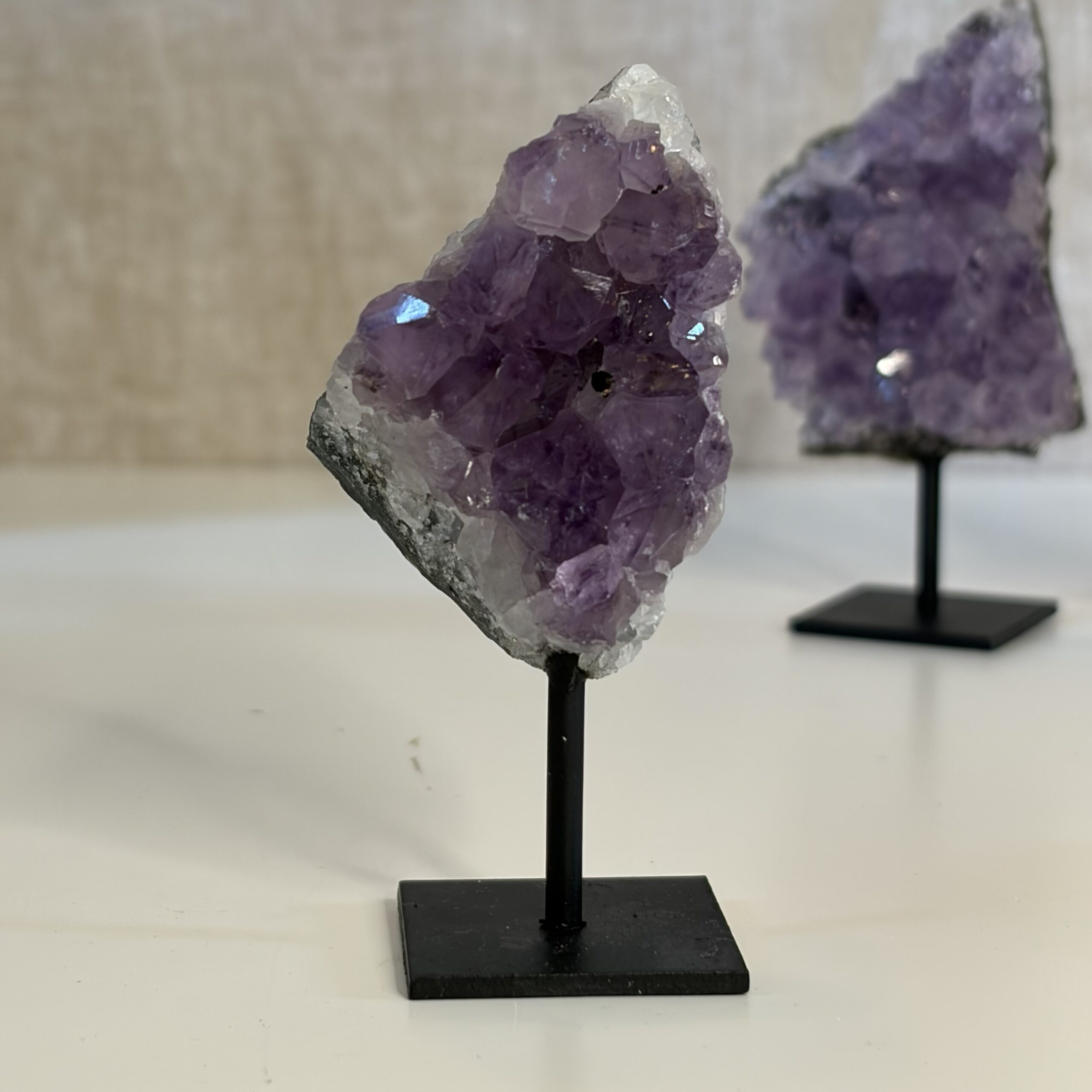 De Braziliaanse amethist heeft een mooie paarse tint en een zachte, harmonieuze uitstraling. Deze edelsteen is populair vanwege haar toegankelijke energie en mooie kristalvorming.