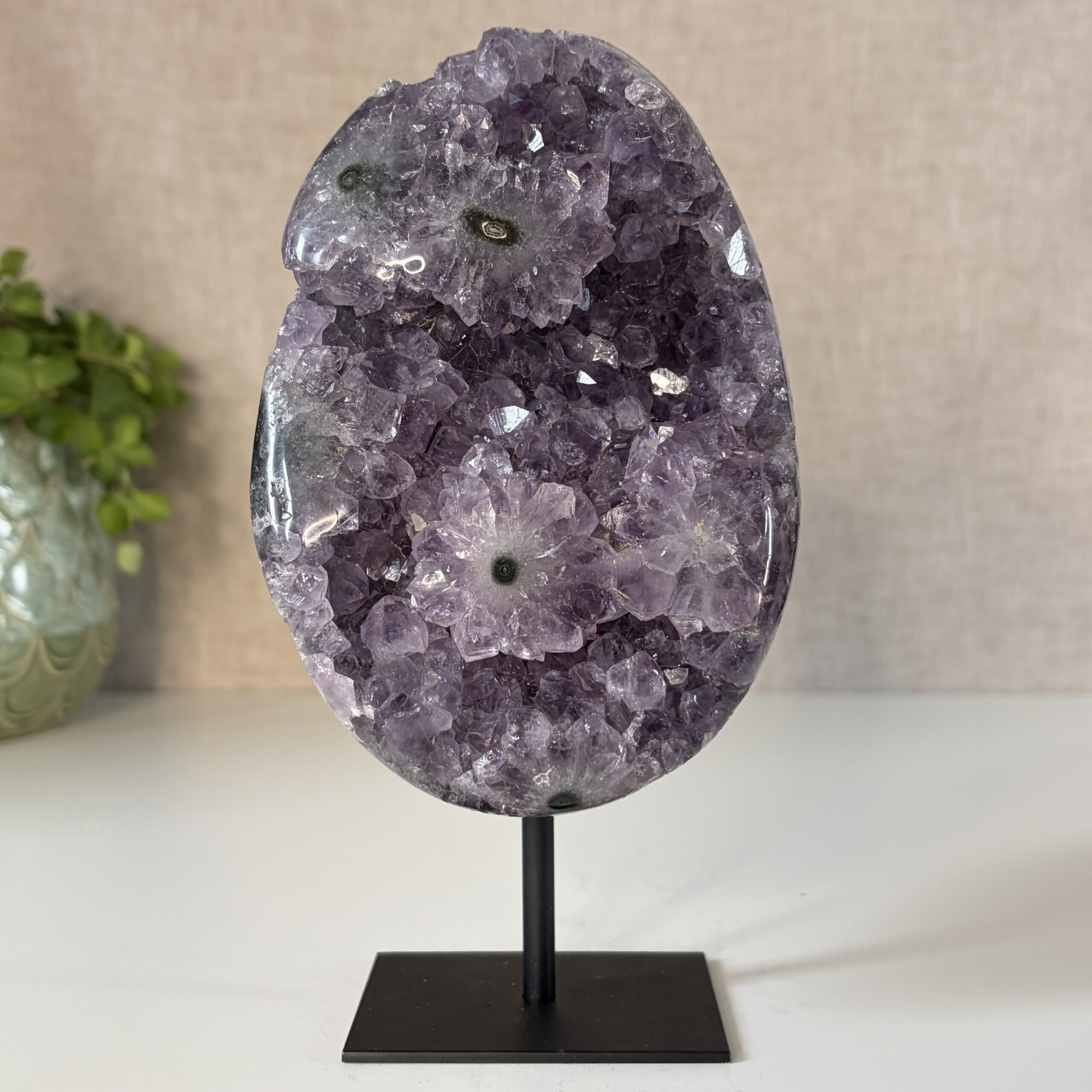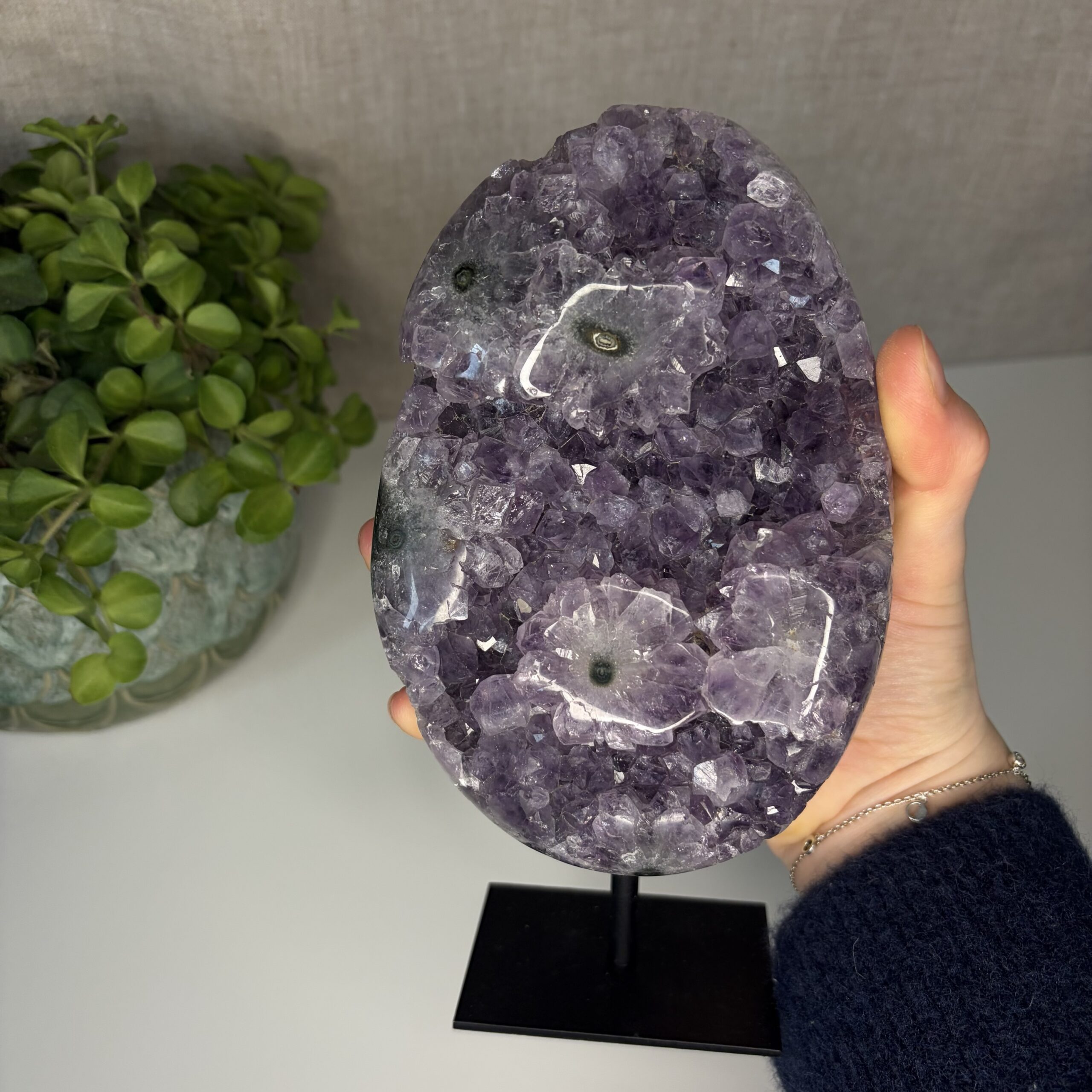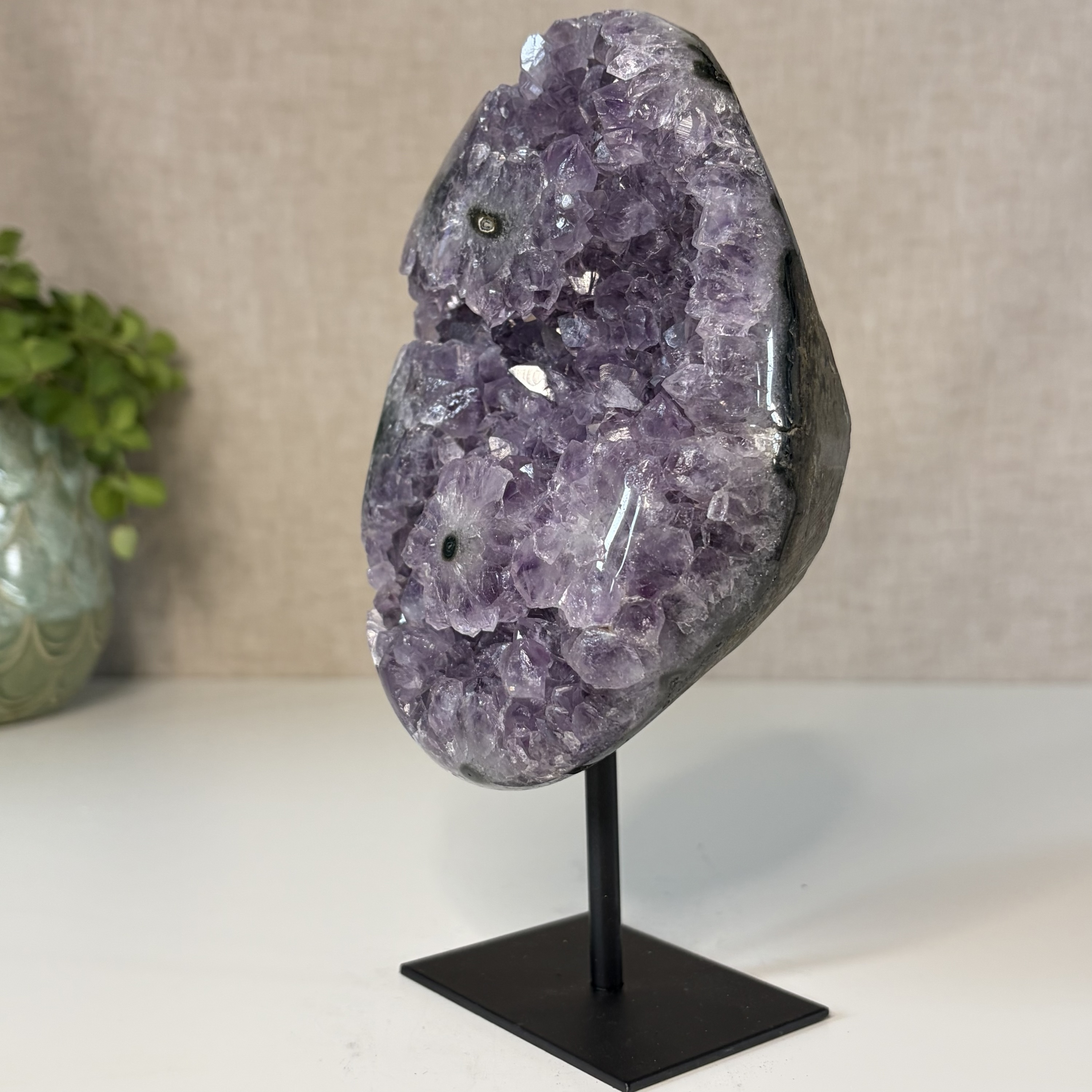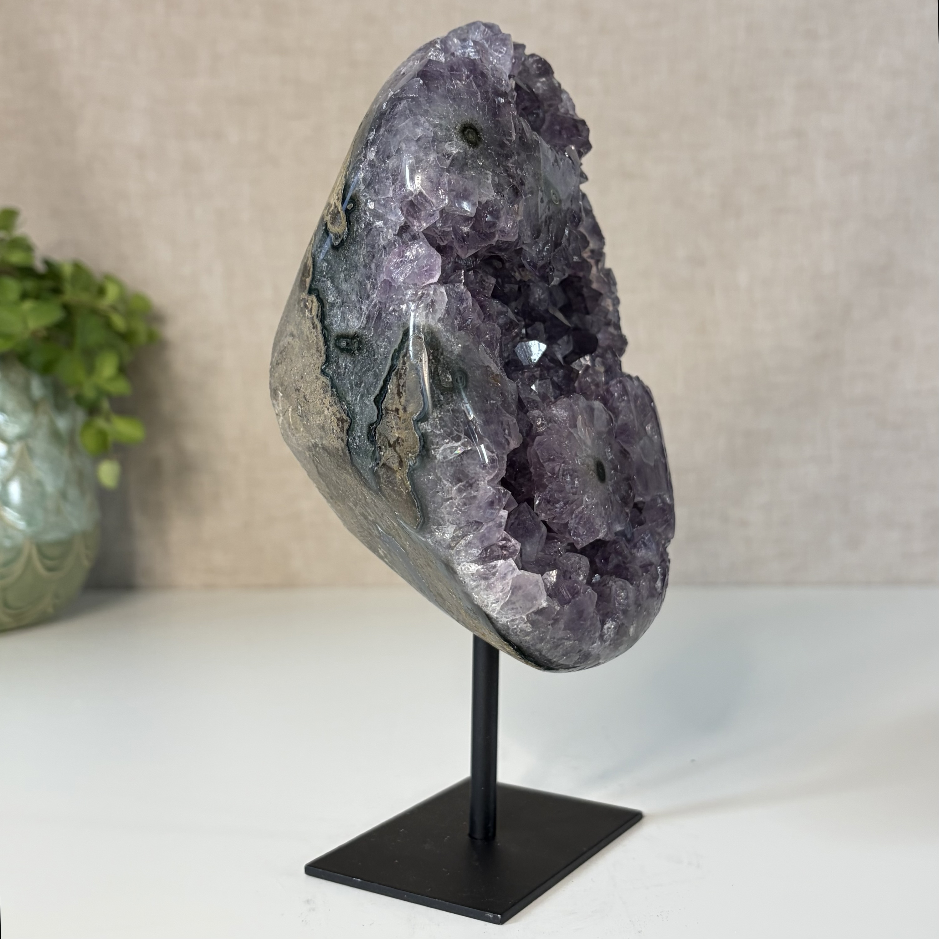 Amethist uit Brazilië wordt geassocieerd met balans, ontspanning en emotionele stabiliteit. De steen helpt bij het verminderen van spanning en het bevorderen van helder denken. Ideaal voor in huis, de slaapkamer of een meditatieplek.
