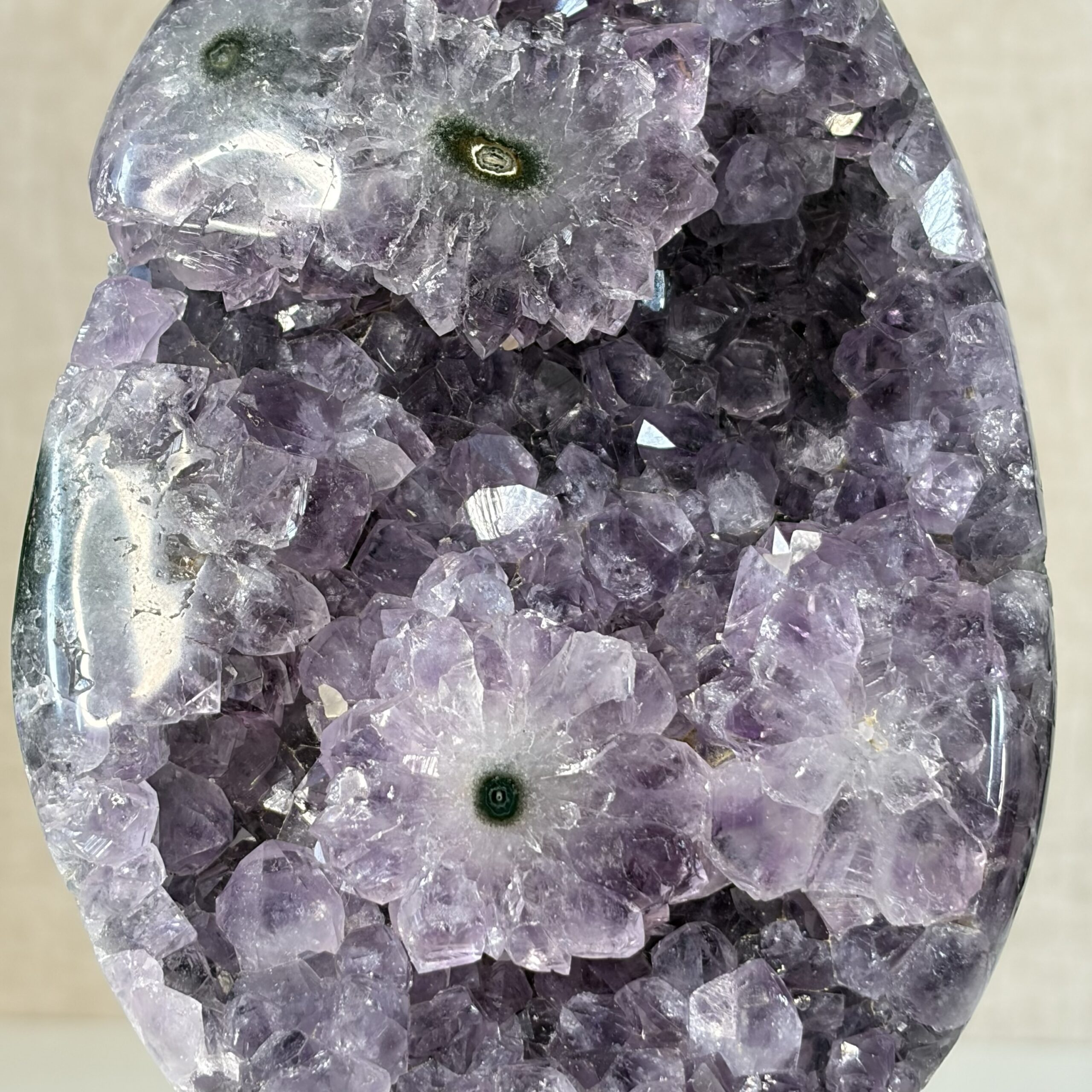 De Braziliaanse amethist heeft een mooie paarse tint en een zachte, harmonieuze uitstraling. Deze edelsteen is populair vanwege haar toegankelijke energie en mooie kristalvorming.