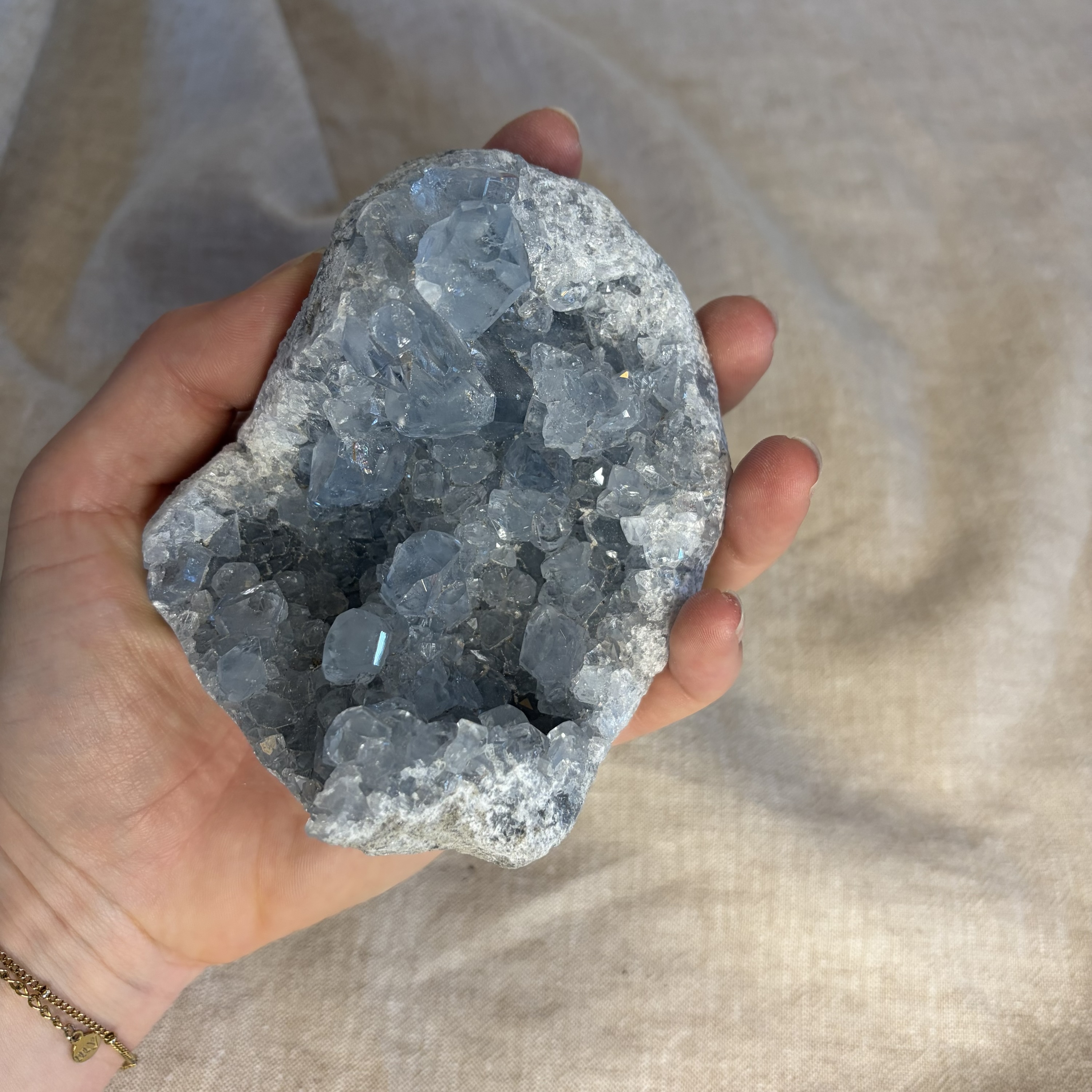 Celestien is een zachte, lichtblauwe edelsteen met een kalmerende en verheffende energie.