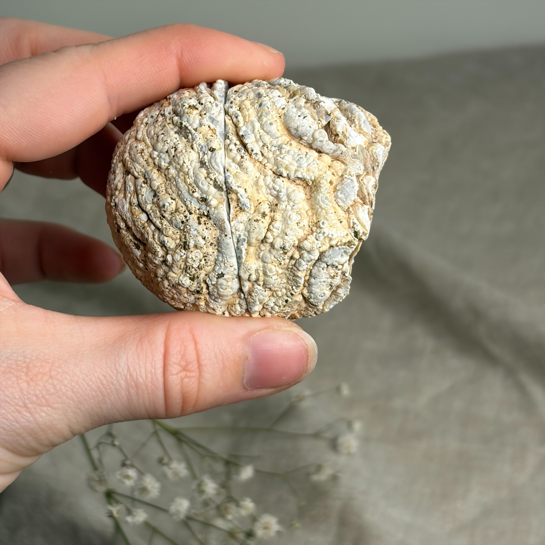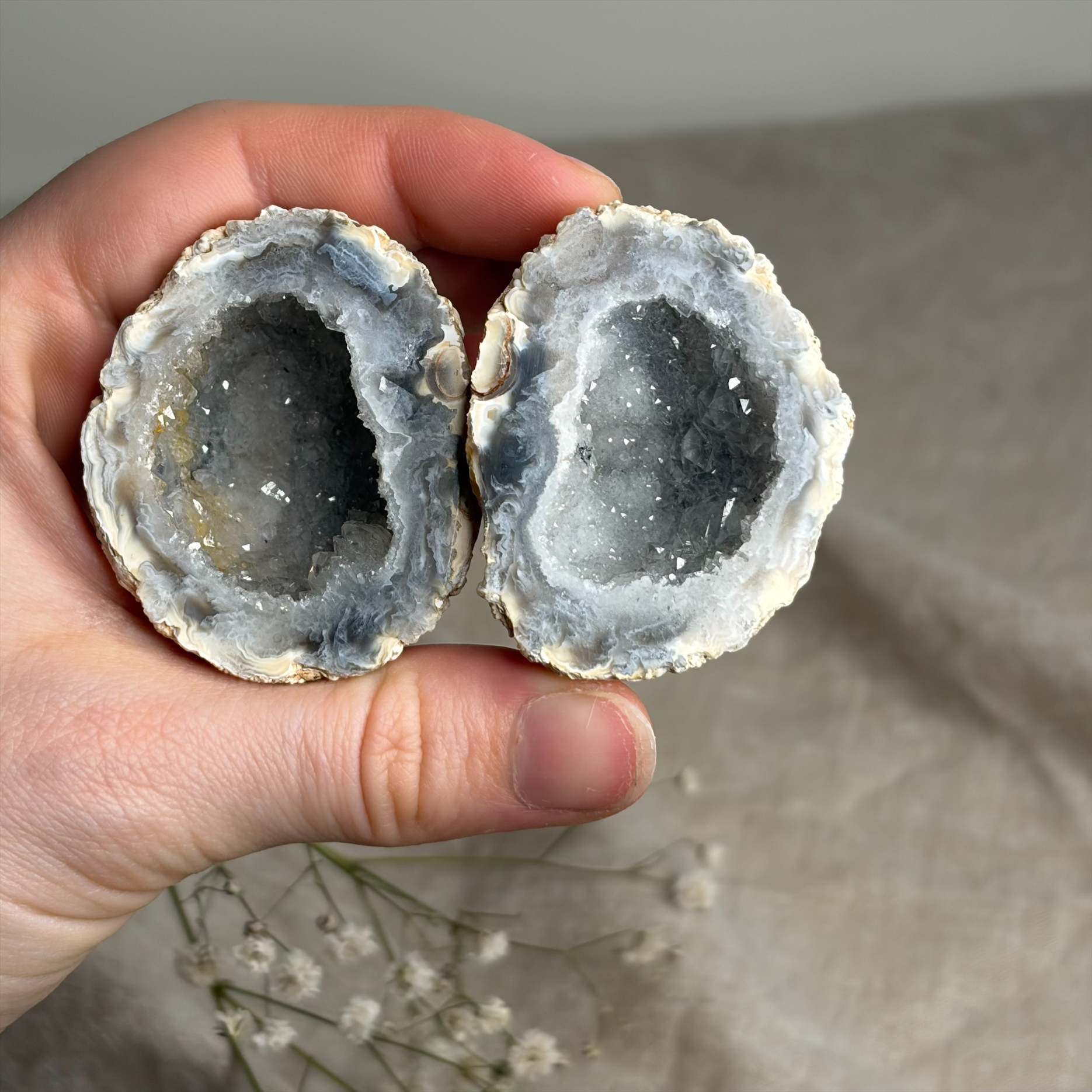 Agaat geode combineert de stabiliserende en aardende werking van gewone agaat met de versterkende energie van de holle kristalstructuur. Ze helpt bij het reinigen en opladen van andere stenen, bevordert innerlijke rust en beschermt tegen negatieve energie. Een prachtige steen voor balans, meditatie en het creëren van een harmonieuze sfeer in huis.