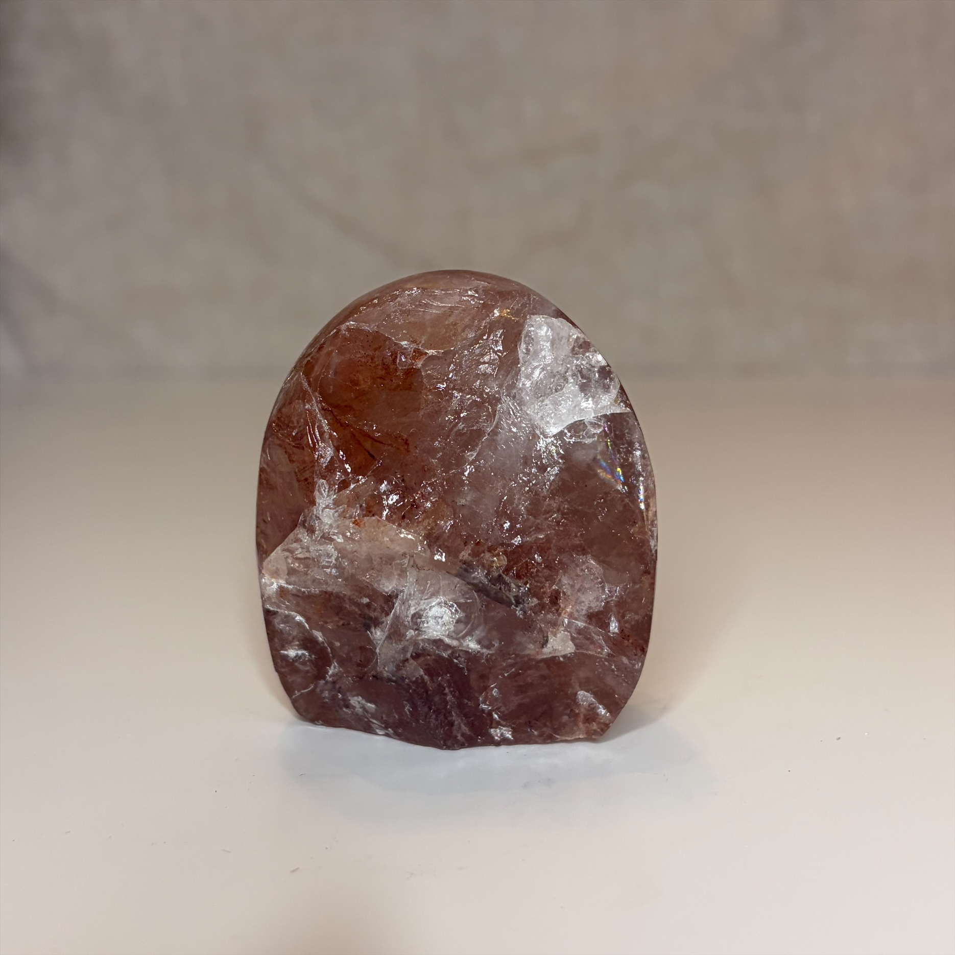 Rode hematoïde kwarts is een combinatie van heldere kwarts met insluitsels van hematiet, wat zorgt voor een warme roodbruine tot oranje gloed. Deze edelsteen combineert de versterkende werking van kwarts met de aardende energie van hematiet.
